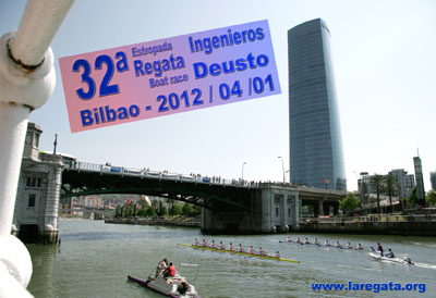 Por octavo año consecutivo, y en virtud del acuerdo de colaboración establecido entre el PRIDE (el Club Promotor de la Regata Ingenieros - Deusto) y Metro-Bilbao, durante la semana previa a la celebración de esta Regata universitaria que ha devenido en símbolo de Bilbao y de la regeneración de las aguas de su Ría, en las pantallas de todas las máquinas expendedoras de billetes de las estaciones que componen la red de Metro-Bilbao se podrá ver el anuncio realizado para dar cuenta de la hora y día en que tendrá lugar la competición: las 13:00 h del 1 de abril de 2012, en el popular "Domingo de Ramos, domingo de remos", y que consiste en una animación gráfica en base a la foto de Manu de Alba de la nueva y recientemente inaugurada TORRE de IBERDROLA, obra de Cesar Pelli , recortada sobre el puente de Deusto al paso de las embarcaciones universitarias, que constituye la ilustración de los carteles de la 32ª edición de esta prueba, a disputar en el tramo de marea de la Ría de Bilbao comprendido entre Desierto-Erandio , donde se da el banderazo de salida, y el Ayuntamiento de Bilbao , donde está situada la llegada, con un total de cuatro millas náuticas ( 7.408 metros ), que suponen 568 metros más que el recorrido de la clásica Oxford - Cambridge.